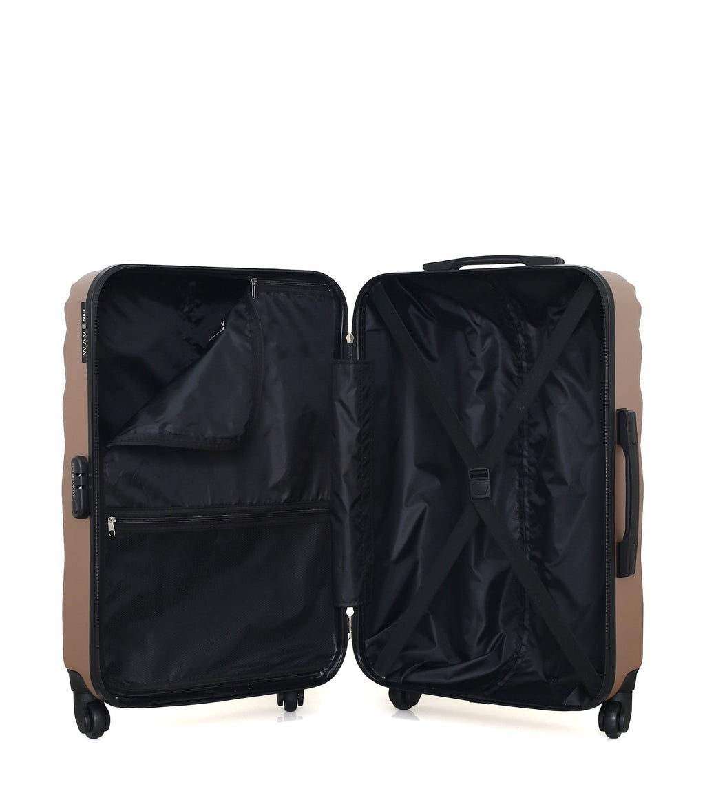 The 2 pieces of luggage in this set are designed in the same way: an adjustable trolley, a rigid shell and, inside, 2 lined compartments of equal volume. In terms of security, each piece of hard-shell luggage in this Wave Paris set includes a code lock to secure the suitcase.