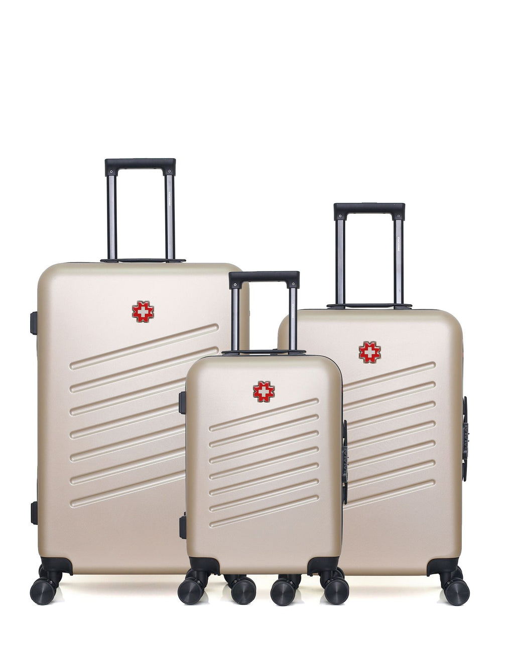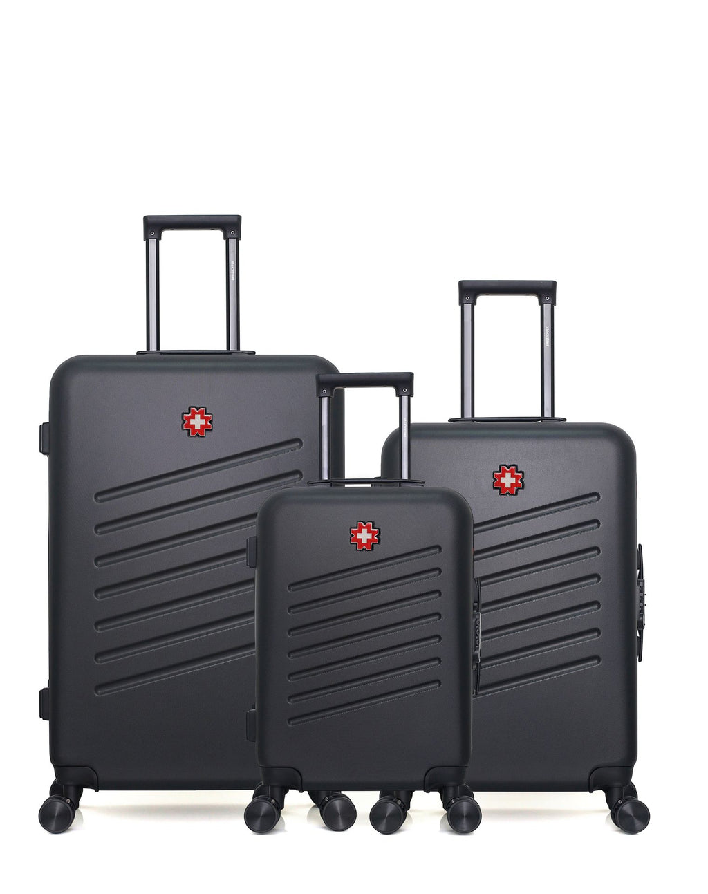 The ZURICH luggage bundle is designed for travelers who need maximum storage and versatility. It includes a large suitcase for extended trips, a medium suitcase for shorter stays, and a cabin suitcase for hand luggage. Made from durable ABS hard-shell material, these suitcases are lightweight yet highly impact-resistant.
